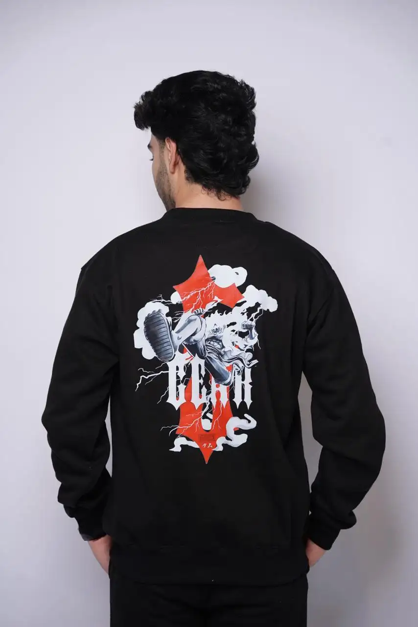 Experience everyday comfort with our Black Graphic Crewneck Sweatshirt | ‘Lightning Strike’ Back Print Streetwear, designed to deliver warmth and effortless style. Crafted from premium soft fleece, it provides a cozy feel inside and out, making it ideal for cool weather or laid-back days. The adjustable drawstring hood, kangaroo pocket, and ribbed trims ensure both function and fit, while the clean minimal logo on the chest adds a subtle statement. Whether youâre heading out or lounging in, this hoodie keeps your look relaxed yet refined.