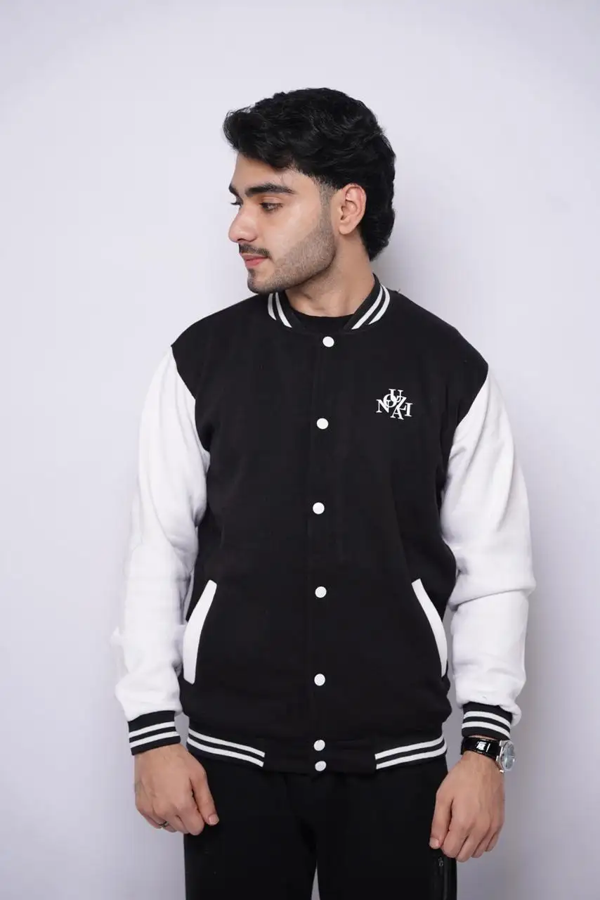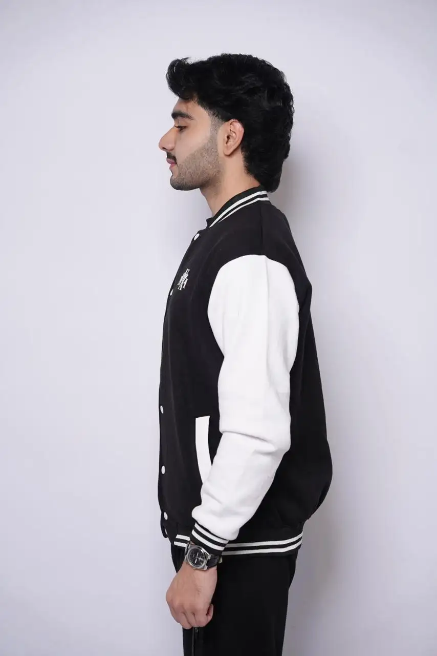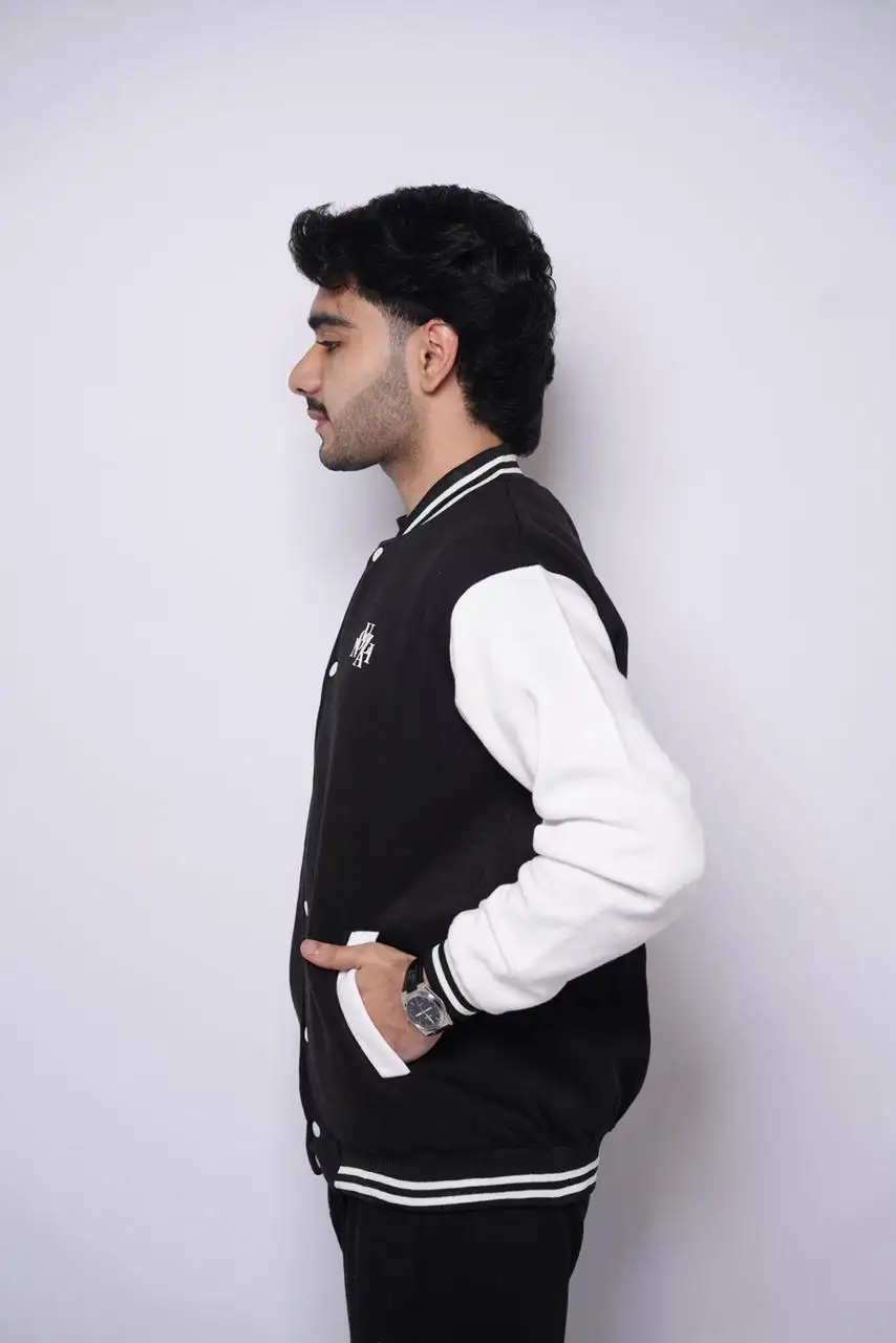 Make a statement with our Black Varsity Jacket, designed for those who love timeless streetwear with a modern twist. Made from high-quality wool-blend fabric with a smooth finish and soft inner lining, it keeps you warm and stylish all day. The rich maroon color, striped ribbed trims, and front snap-button closure give it that iconic varsity look, while the minimal embroidered logo on the chest adds a touch of sophistication.