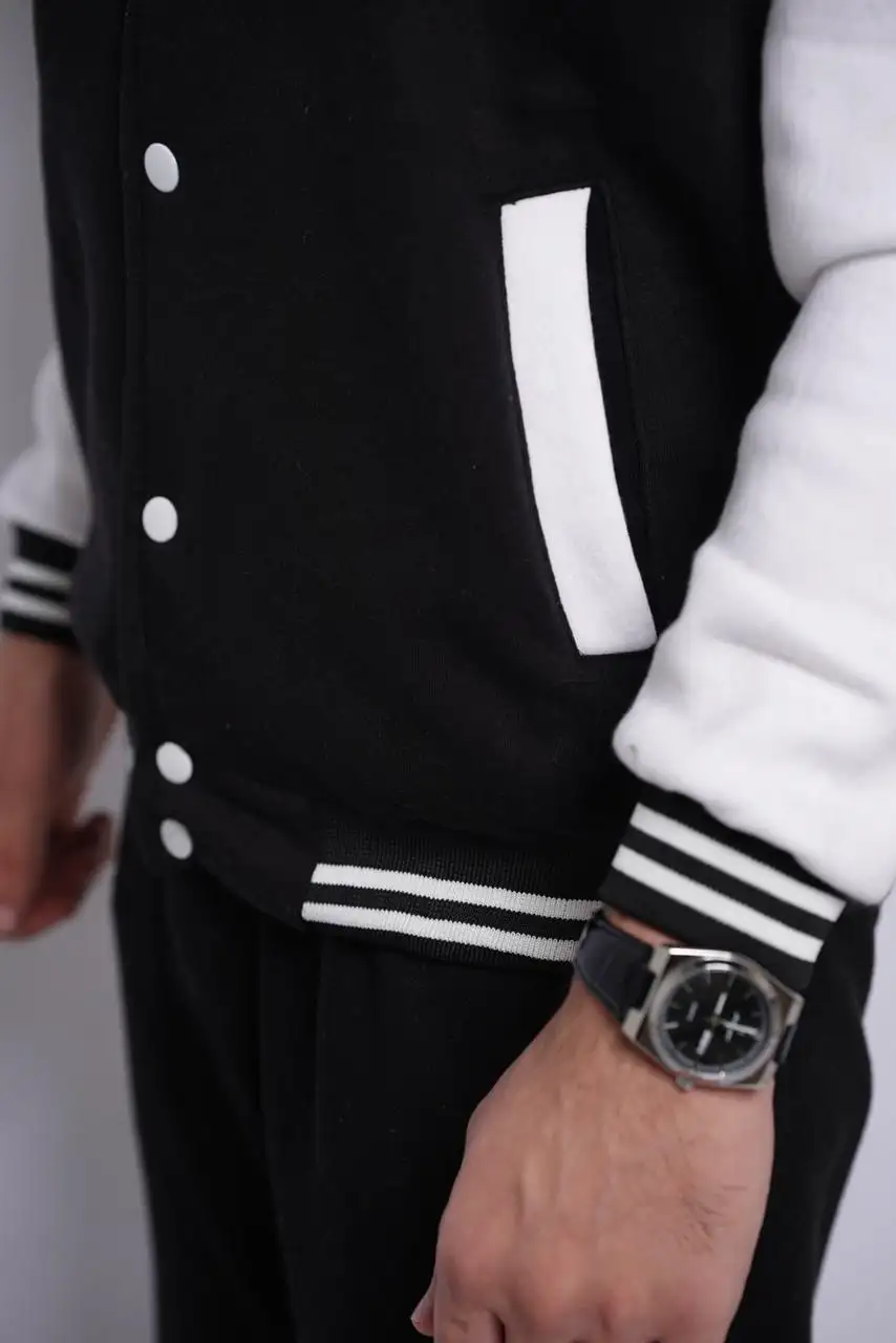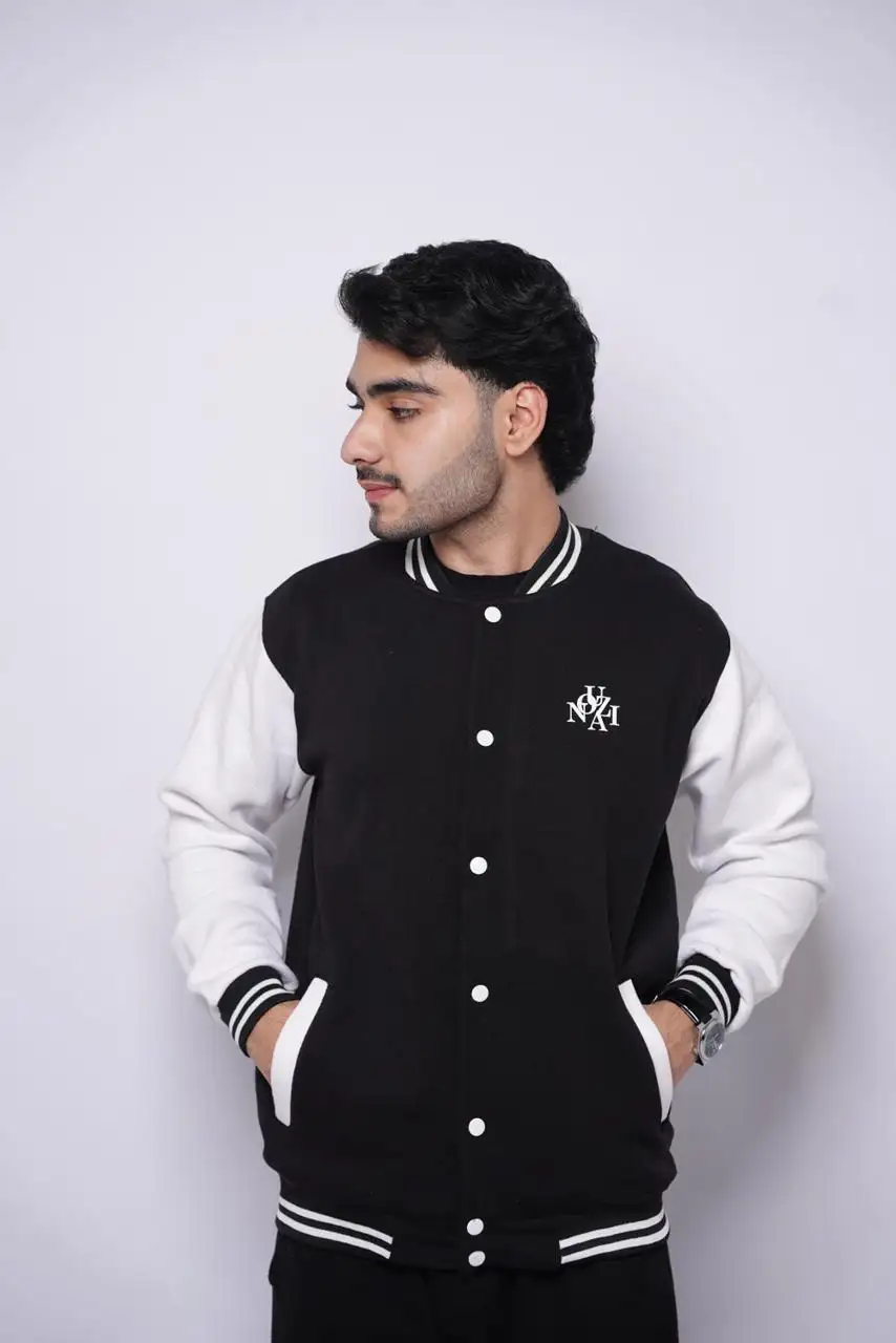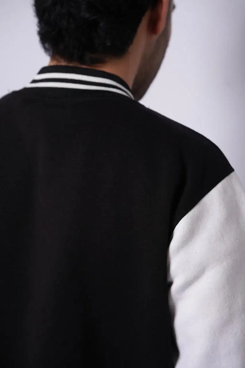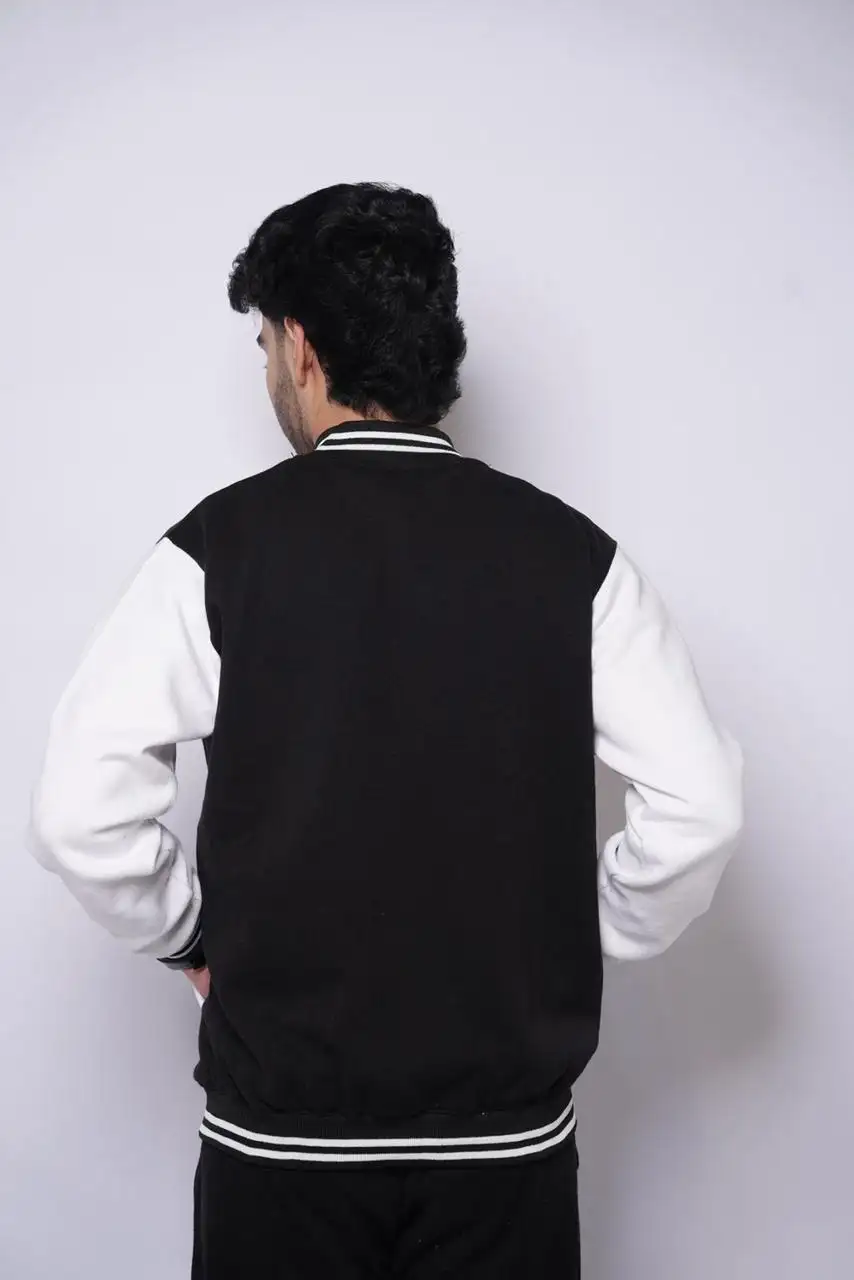 Make a statement with our Black Varsity Jacket, designed for those who love timeless streetwear with a modern twist. Made from high-quality wool-blend fabric with a smooth finish and soft inner lining, it keeps you warm and stylish all day. The rich maroon color, striped ribbed trims, and front snap-button closure give it that iconic varsity look, while the minimal embroidered logo on the chest adds a touch of sophistication.