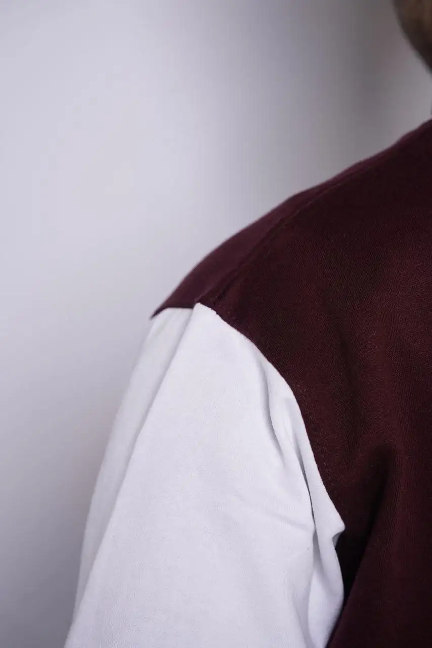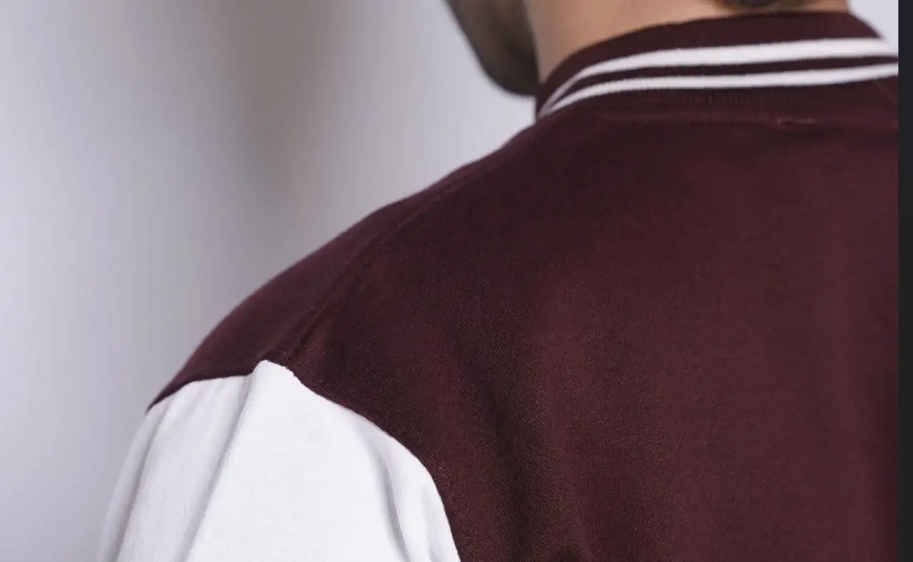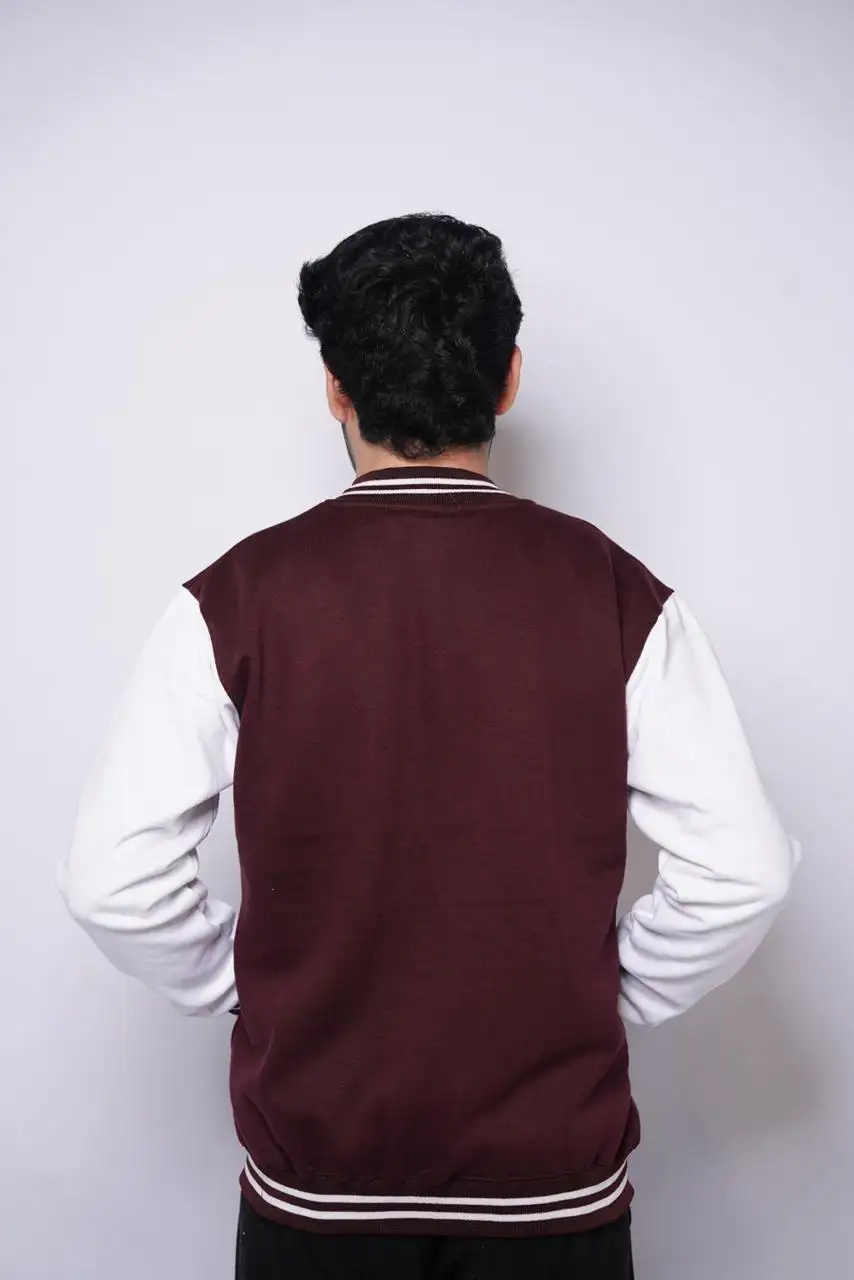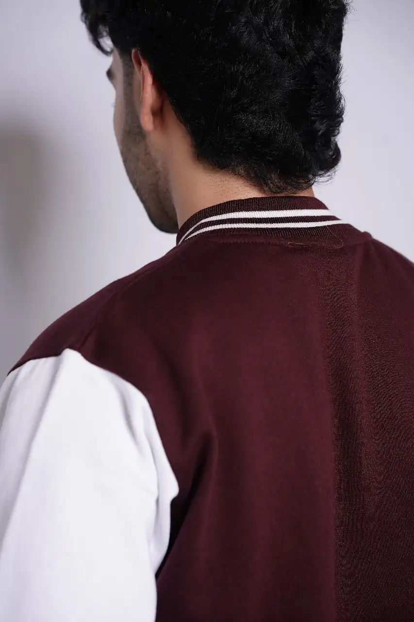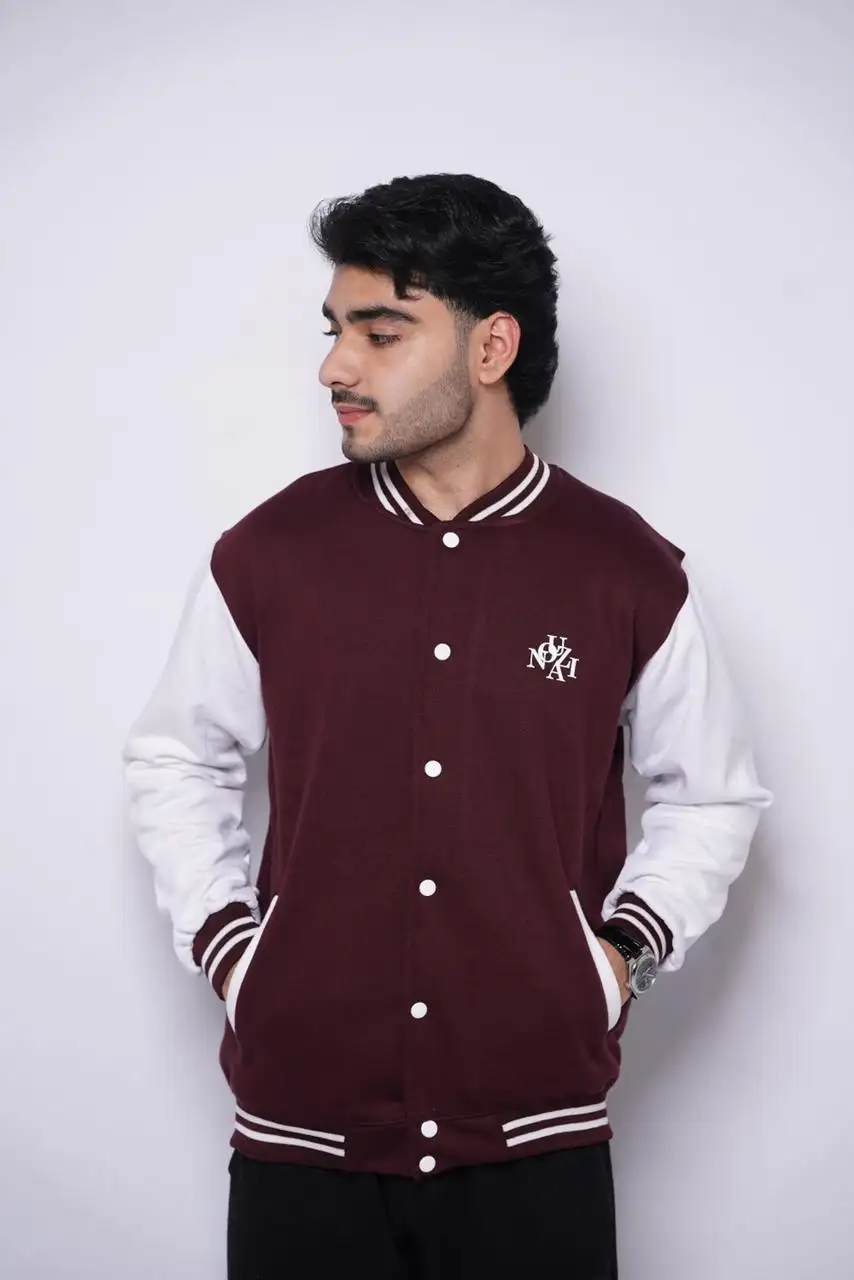 Make a statement with our Maroon Varsity Jacket, designed for those who love timeless streetwear with a modern twist. Made from high-quality wool-blend fabric with a smooth finish and soft inner lining, it keeps you warm and stylish all day. The rich maroon color, striped ribbed trims, and front snap-button closure give it that iconic varsity look, while the minimal embroidered logo on the chest adds a touch of sophistication.