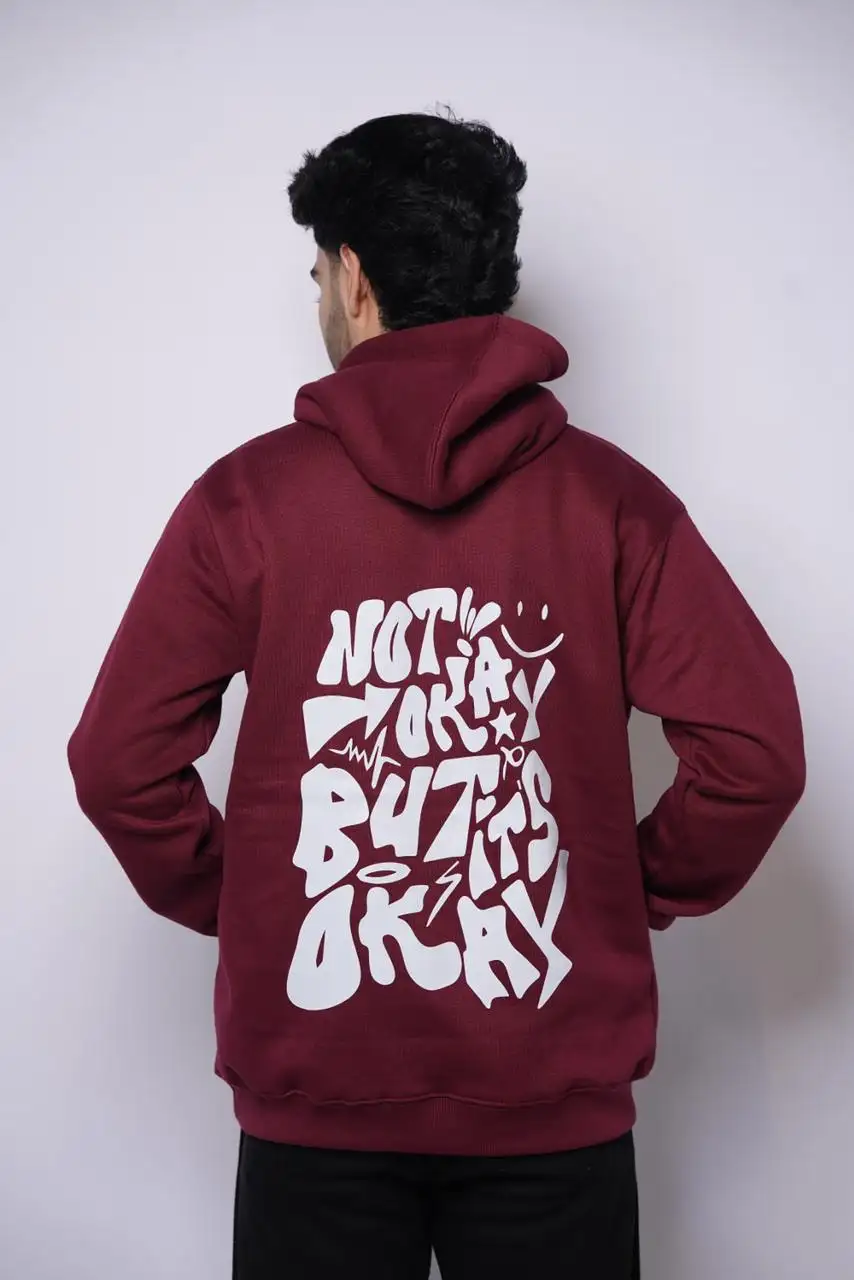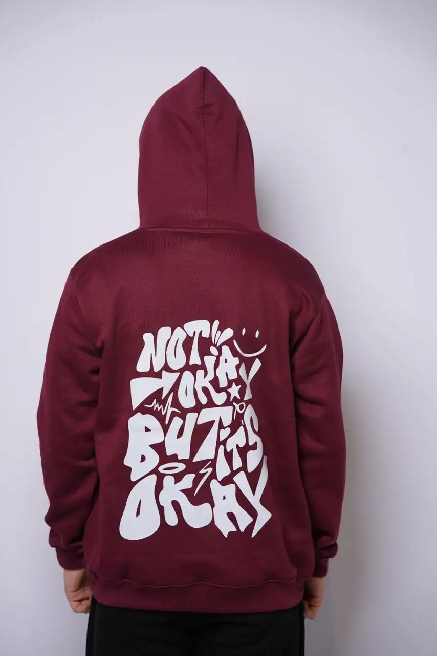 Experience everyday comfort with our “Not Okay But It’s Okay” Graphic Hoodie – Maroon, designed to deliver warmth and effortless style. Crafted from premium soft fleece, it provides a cozy feel inside and out, making it ideal for cool weather or laid-back days. The adjustable drawstring hood, kangaroo pocket, and ribbed trims ensure both function and fit, while the clean minimal logo on the chest adds a subtle statement. Whether you’re heading out or lounging in, this hoodie keeps your look relaxed yet refined.